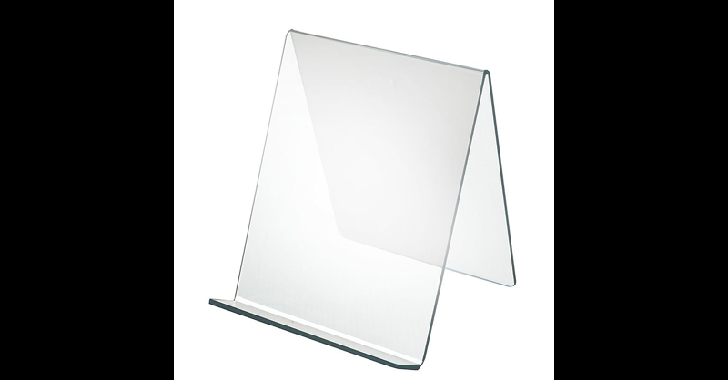 Acrylic Easel w/ 1. 75" front lip measuring 10. 5" x x 9. 5" is sold as 10/pack. Easel is made fromacrylic and is ideal for trade shows, retail stores and more. Use to display various items such as phones, tablets, books and more. Front lip1 3/4"(H). Made of 0. 1875" thick acrylic. Acrylic. 10 1/2"(H) x 9"(W) x 9 1/2"(D). Great for retail stores, restaurants, trade shows, business and more. Azar Acrylic Easel w/ 1. 75" front lip is sold as 10/pack and measures 10. 5" x 9. 5" x 9".