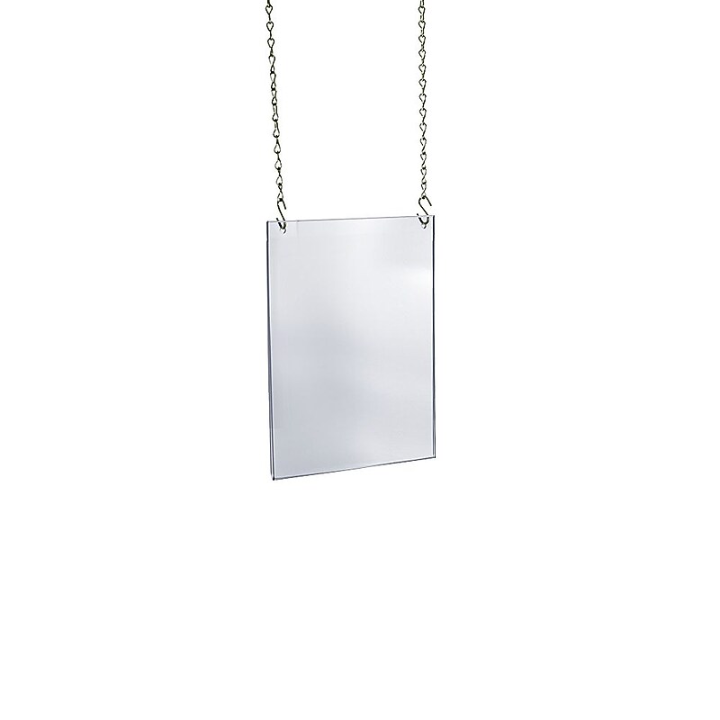 Make the most of your store space with the Azar Displays Hanging Poster Frame that enables your to display information or promotional offers by suspending them from the ceiling to maximize advertising opportunity. You can suspend the hanging poster frame to indicate different sections in your store for easy customer guidance. Made of acrylic this poster frame is extremely durable and sturdy. You can use this poster frame to advertise effectively in your store or cafe. Made of acrylic to offer strength and durability. Transparent design enables easy visibility of signage. Hanging poster frames conveniently display signage to ensure maximum customer visibility. Comes with a hanging hardware kit. Dimensions: 11"W x 17"H. The Azar Displays X Hanging Poster is used by leading retailers as a quick and easy way to suspend promotional material from the ceiling in departmental stores.
