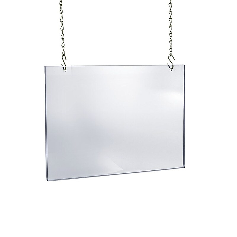 Make the most of your store space with the Azar Displays Hanging Poster Frame that enables your to display information or promotional offers by suspending them from the ceiling to maximize advertising opportunity. You can suspend the hanging poster frame to indicate different sections in your store for easy customer guidance. Made of acrylic this poster frame is extremely durable and sturdy. You can use this poster frame to advertise effectively in your store or cafe. Transparent design enables easy visibility of signage. Hanging poster frames conveniently display signage to ensure maximum customer visibility. Comes with a hanging hardware kit for added convenience. Dimensions: 22"H 28"W. The Azar Displays Hanging Poster Frame is used by leading retailers as a quick and easy way to suspend promotional material from the ceiling in departmental stores.