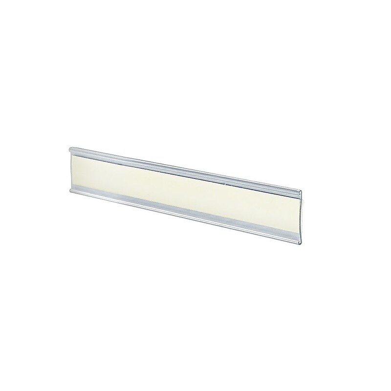 Advertise ongoing and upcoming offers or distinguish individual sections in your store with the Azar Displays plastic C-channel nameplates. Crafted fromplastic, these nameplates are designed for durability and better visibility. Adhesive double sided tape on the back of the nameplates enables application on practically any clean surface. The inbuilt groove offers easy sliding of name or tag inside nameplate for efficient display. Plastic construction offers enhanced visibility. Double-sided tape for easy fixation. Offers easy sliding of material in the inbuilt groove. Available in a pack of 10. Dimensions: 6''W 1. 5''H. The Azar Displays 1. 5'' 6'' Plastic Adhesive-Back C-Channel Nameplate constructed fromplastic with a double sided tape at the back offers enhanced visibility while displaying names.