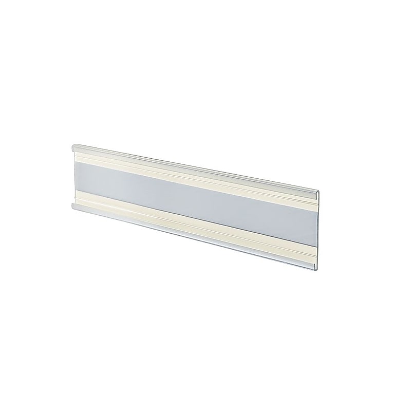 Advertise ongoing and upcoming offers or distinguish individual sections in your store with the Azar Displays plastic C-channel nameplates. Crafted fromplastic, these nameplates are designed for durability and better visibility. Adhesive double sided tape on the back of the nameplates enables application on practically any clean surface. The inbuilt groove offers easy sliding of name or tag inside nameplate for efficient display. Plastic construction offers enhanced visibility. Double-sided tape for easy fixation. Offers easy sliding of material in the inbuilt groove. Available in a pack of 10. Dimensions: 2''H 6''W. The Azar Displays 2'' 6'' Plastic Adhesive-Back C-Channel Nameplate constructed fromplastic with a double sided tape at the back offers enhanced visibility while displaying names.