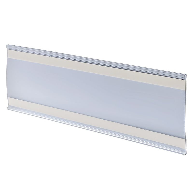 Advertise ongoing and upcoming offers or distinguish individual sections in your store with the Azar Displays Plastic C-Channel Nameplates. Crafted fromplastic, these nameplates are designed for durability and better visibility. Adhesive double s ided tape on the back of the nameplates enables application on practically any clean surface ensuring firm fixation. The inbuilt groove offers easy sliding of name or tag inside nameplate for efficient display. Plastic construction offers enhanced visibility. Double-sided tape for easy fixation. Offers easy sliding of material in the inbuilt groove. Sold as a pack of 10 adhesive nameplates. Dimensions: 4''H 11''W. The Azar Displays 4'' 11'' Plastic Adhesive-back C-Channel Nameplate constructed fromplastic with a double sided tape at the back offers enhanced visibility while displaying names.