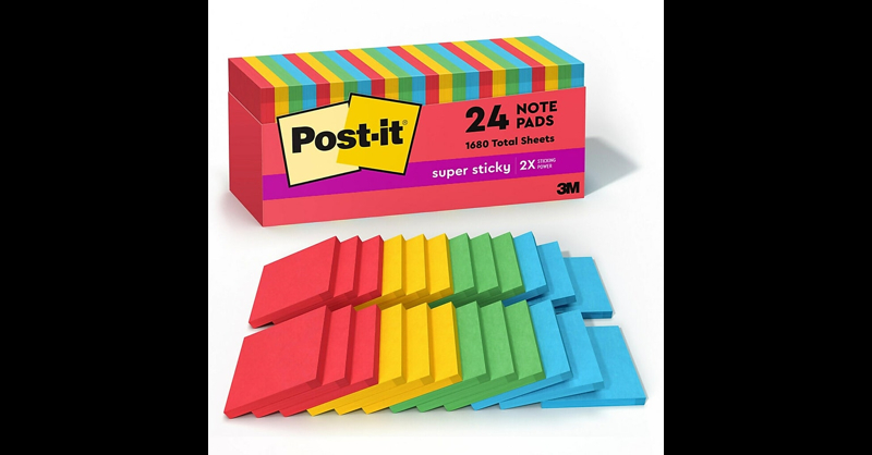 Add joy to the day alongside celebrated rainbow hues from the Playful Primaries collection. Whether jotting down your daily to-do's, brainstorming big ideas, studying or setting reminders, colors and ideas are always brighter together. These sticky notes feature 2X the sticking power. They also stick and re-stick - allowing you to move your notes with you throughout your day. Theyre ideal for walls, doors, windows and other vertical surfaces, and like all Post-it Notes, they stick securely yet remove cleanly without damage. Keep your ideas across your notebooks, classroom books, calendars or other documents. No tape or tacks are needed with adhesive notes, saving you money and time on office products or school supplies. A great memo pad, these are ideal for using for notes or reminders to yourself or others. Post-it Super Sticky Notes are the perfect solution for shopping lists, reminders, notes on computer screens, time tracking, to-do lists, marking cables, color-coding documents, reminding kids to do chores, storyboarding, scratch paper and agile processing. Each notes sheet is approximately 3 in. 3 in. , with 70 sheets per pad and 24 sticky note pads per pack. These colorful sticky notes include colors from the Playful Primaries collection including red, yellow, green,and lilac. All Post-it Notes are sourced from certified, renewable and responsibly managed forests, and all Post-it Notes are recyclable, so you can recycle them when they are no longer needed. VERSATILE AND ESSENTIAL: Post-it Super Sticky Notes are the perfect solution for shopping lists, reminders, to-do lists, color-coding, labeling, family chore reminders, brainstorming, storyboarding, and quick notes. INTRODUCING THE PLAYFUL PRIMARIES COLLECTION: Add joy to the day alongside celebrated rainbow hues from the Playful Primaries collection including Candy Apple Red, Sunnyside, Lucky Green, Blue Paradise and Iris Infusion in 3 in. 3 in. sheets. GET ORGANIZED: Each pack includes 24 pads notes, with 70 sheets per pad, great for stocking up your office, work area, or classroom. EXPERIENCE THE POWER OF 2X STICKINESS: Post-it Super Sticky Notes offer twice the sticking power of basic sticky notes, ensuring they stay put and won't fall off. STICK AND RESTICK ANYWHERE: These notes adhere firmly to walls, windows, doors, and other vertical surfaces, allowing you to move your reminders with ease. VARIOUS SIZES AND SHAPES: Available in different sizes, with or without lines, to cater to your specific needs. EYE-CATCHING COLORS: Vibrant and colorful reminders are more likely to grab attention and be noticed. EXPLORE OUR COLLECTIONS: With 11 color collections, the Post-it Brand offers a wide range of options to suit every style and preference, whether at home, in school, or at the office. TRUST THE ORIGNAL CREATOR: Made in the USA with globally sourced materials, the one and only Post-it Note was invented over 40 years ago by the Post-it Brand. SUSTAINABILITY: Post-it Super Sticky Notes can be recycled. ENHANCE YOUR NOTE-TAKING EXPERIENCE: Download the free Post-it App on your smartphone or tablet to enjoy the simplicity and convenience of Post-it Notes anytime and anywhere.