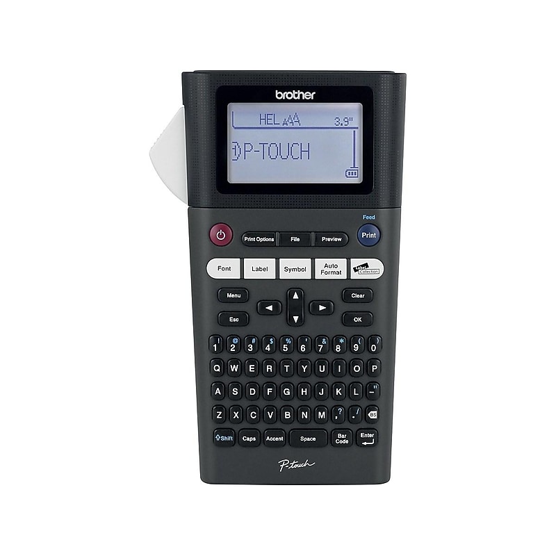 Give staff an easy way to manage inventory with this label maker. The vivid bright display offers a clear preview before you print, and the pre-loaded designs allow for fast, easy label creation. Choose from an array of built-in symbols, bar codes, and fonts to find the right option for every task. This Brother label maker boasts fast print times, so you can create long rolls of stickers quickly. Label maker for quick organization of items and documents. Maximum print speed up to 0. 79 ips for enhanced productivity. Offers printing with 180 dpi maximum resolution. Thermal transfer printing technology eliminates the need for ink. Uses TZe tape up to 0. 7" wide. Choose from 14 fonts and 11 font styles for user convenience. Dimensions: 2. 6"H x 5. 2"W x 8. 4"D. Run on six AA batteries. 2-year manufacturer limited warranty. Create custom bar codes, price tags, and other stickers with this Brother take-it-anywhere one-touch formatting label maker.