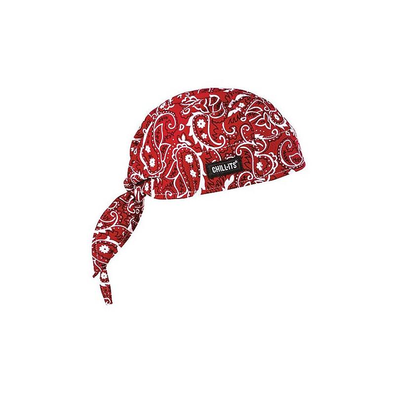 Ergodyne Chill-Its 6615high performance dew rag contains an absorbent terry area and elastic band for maximum performance/wearability. Dew rag is ideal for construction, trade and maintenance. Red western. Absorbent terrycloth band. One size fits most. Applications: Construction, trades, maintenance, landscaping/grounds, assembly/fabrication, material handling, freight/baggage, warehousing/distribution, iron/steel fabrication. Hi Cool moisture management performance fabric. Comfortable to wear under hats, helmets or alone. Elastic band for a great fit. Cooling absorptive, hi cool moisture management. Machine washable. Ergodyne Chill-Its 6615high performance dew rag is made with hi cool fabric that absorbs as well as removes moisture from the head keeping it cool/dry and is comfortable to wear under hat/helmet or alone.