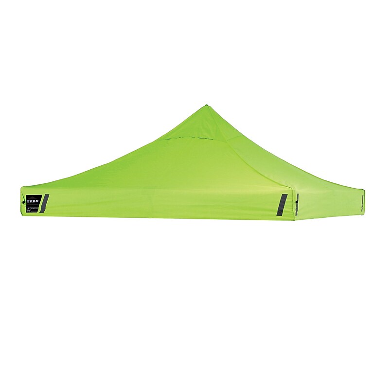 Ergodyne SHAX Lime replacement canopy features double ventilation for magnificent air flow. Replacement canopy is made of strong 300D polyester shell with PU coating for long lasting durability. Replacement Canopy for Heavy-Duty Commercial Pop-Up Tent. 10'. Lime. Replacement canopy. foot print. 300D polyester shell with PU coating. Applications: Construction, trades, landscaping/grounds, utility crews, survey crews, oil/gas refining, emergency response, agriculture. Meets CPAI-84 fire code. Double vented for maximum air flow. Ergodyne SHAX Lime replacement canopy measuring meets all requirements of CPAI-84 fire code and is ideal for construction, trades, utility crews, survey crews and emergency response.
