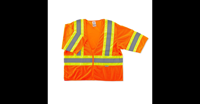 Ergodyne GloWear 8330Z 4XL/5XLclass 3 Hi-vis two-tone vest is made of 3. 3 oz polyester mesh for longer life. Vest with zipper closure includes an inside pockets with 2" reflective tape on 4 1/2" contrasting color background. Size 4XL/5XL. Two-tone safety vest. Class 3. Zipper front. Orange. 1 Each. One inside pocket with 4 1/2" lime strip. Dimensions: 15 1/4"(H) x 1"(W) x 10 1/4"(D). Class 3 two-tone vest has 3M Scotchlite 2" silver reflective stripe centered in the lime stripe. Material: Polyester mesh. Fabric weight: 3. 3 oz. Applications: Road construction, utility crew, survey crew, construction, railway workers, baggage handlers, emergency response, warehouse/distribution. Features high visibility, machine washable. Tape specification: 1 x 360 deg, 2 x vertical. Standards: ANSI 107 class 3. 4XL/5XL. Orange colors for high visibility. Reflective set on 4 1/2" contrasting color background. Applications: Flagging crew, road construction, utility crew, survey crew, construction, emergency response, railway workers. Pockets: One inside. Closure: Zipper. Fits 58" - 64" chest size. Machine washable. Mesh fabric. Ergodyne GloWear 8330Z 4XL/5XLclass 3 Hi-vis two-tone vest is perfectly designed for emergency response, road construction and railway workers applications and comes with a zipper closure.