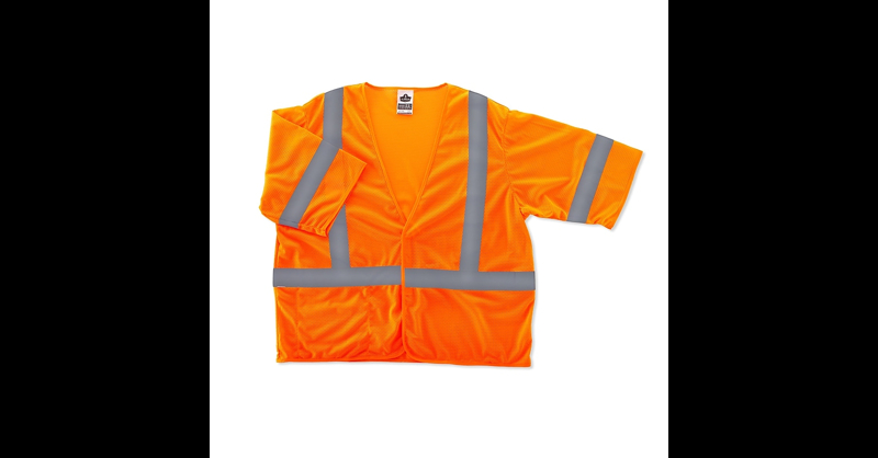 Ergodyne GloWear 8310HL 4XL/5XLclass 3 Hi-vis economy vest is made of 3. 3 oz polyester mesh for longer life. Vest with hook and loop closure includes an inside pocket with 2" reflective tape for more comfort. Size 4XL/5XL. Economy safety vest. Class 3. Hook and loop front. Orange. 1 Each. One inside pocket. Dimensions: 15 1/4"(H) x 1"(W) x 10 1/4"(D). Class 3 economy vest has 2" silver reflective stripe. Material: Polyester mesh. Fabric weight: 3. 3 oz. Applications: Flagging crew, road construction, utility crew, survey crew, construction, emergency response, railway workers. Features high visibility, machine washable. Tape specification: 1 x 360 deg, 2 x vertical, 2 x sleeves. Standards: ANSI/ISEA 107. 4XL/5XL. Orange colors for high visibility. Pockets: One inside. Closure: Hook and loop. Fits 58" - 64" chest size. Tape specs: 360 deg, Vertical, Sleeves. Reflective material. Machine washable. Ergodyne GloWear 8310HL 4XL/5XLclass 3 Hi-vis economy vest is perfectly designed for emergency response, road construction and railway workers applications and comes with hook and loop closure.
