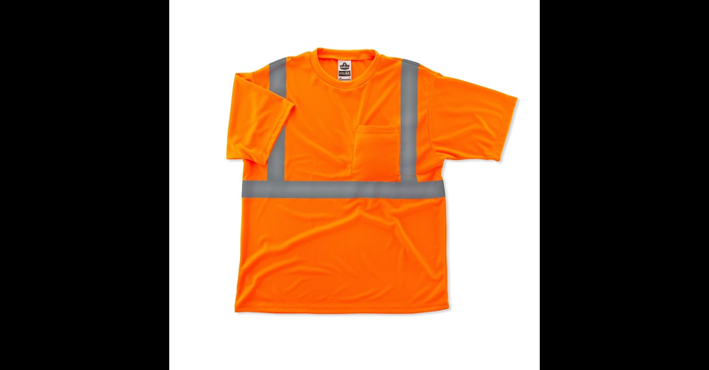 Ergodyne GloWear 8289 orange class 2 Hi-vis T-shirt with moisture wicking treatment is made of 4. 1 oz polyester breathable knit for longer life. T-shirt includes 2" heat transfer reflective tape for more comfort and flexibility. Class 2 Short Sleeve T-Shirt. Color: Hi-Vis Orange. Size: 5XL. ANSI-compliant polyester breathable knit (4. 1 oz. ). Moisture wicking treatment. 2" Level 2 ANSI-compliant reflective material. Heat transfer reflective for flexible comfort. Pockets: One outside chest. 5XL. Orange. Material: 4. 1 oz. breathable polyester. Applications: Railway workers, baggage handlers, warehouse/distribution, road construction, utility crew, survey crew construction. Fits 58" - 62" chest size. Sleeve length: Short sleeve. Value price apparel with lightweight birds eye knit. Crafted with 2" Level 2 reflective material. Ergodyne GloWear 8289 orange class 2 Hi-vis T-shirt is perfectly designed for utility crew, railway workers, road construction and warehousing applications and comes with an outside chest pocket.