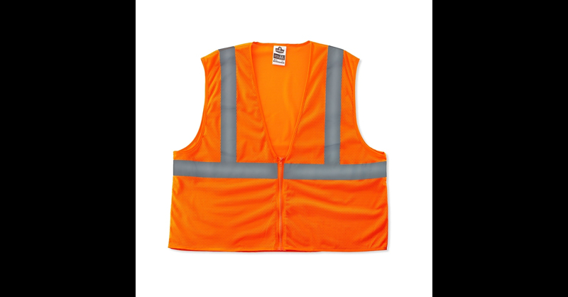 Ergodyne? GloWear? 8205Z 2XL/3XLclass 2 Hi-vis super economy vest with 2" reflective tape is made of 3. 3 oz polyester mesh for longer life. Vest with zipper closure is used by railway workers, utility crew and baggage handlers. Size 2XL/3XL. Super economy safety vest. Class 2. Zipper front. Orange. 1 Each. Dimensions: 15 1/4"(H) x 1"(W) x 10 1/4"(D). Class 2 super economy vest has 2" silver reflective stripe. Material: Polyester mesh. Fabric weight: 3. 3 oz. Applications: Road construction, utility crew, survey crew, construction, railway workers, baggage handlers, emergency response, warehouse/distribution. Features high visibility, machine washable. Standards: ANSI certified. 2XL/3XL. Orange colors for high visibility. Best for folks working near traffic on tasks that make them turn their attention away from traffic. Material: 3. 3 oz. polyester mesh. Applications: Road construction, utility crew, survey crew, construction, railway workers, baggage handlers, emergency response, warehousing/distribution. Style: Economy. Closure: Zipper. Fits 52" - 58" chest size. Visibility enhancing materials like retroreflective tape and fluorescent colors. Machine washable. Includes retroreflective details to help keep workers safe and seen. 2" reflective tape. Certifications and standards: ANSI compliant. Ergodyne GloWear 8205Z 2XL/3XLclass 2 Hi-vis super econo vest is perfectly designed for road construction, emergency response and warehousing applications and comes with a zipper closure.