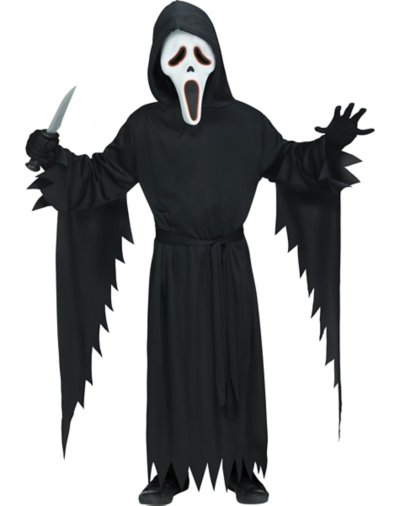 Go for the maximum scare factor this Halloween when you dress up in this official Kids Light-Up Ghost Face costume! With its hooded robe, light-up E.L. Ghost Face mask and belt, you'll look truly terrifying! If you're looking for a scary costume this year, you can't go wrong as Ghost Face! Officially licensed Includes: Hooded robe Light-up E.L. Ghost Face mask Belt Battery Box Battery type: 2 AA batteries (not included) Material: Robe and belt: Polyester Care: Robe and belt: Hand wash; Mask: Wipe clean Imported Note: Knife sold separately Ghost Face is a registered trademark of Fun World Div., Easter Unlimited Inc. Ghost Face protected under worldwide copyright registration and is the exclusive property of Fun World Div.