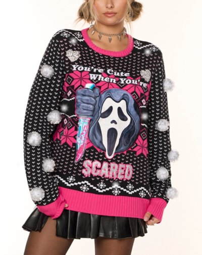 Buy Light-Up Ghost Face Youre Cute When Youre Scared Christmas Sweater by Spirit Halloween for $34.99 at @ Spirithalloween.com