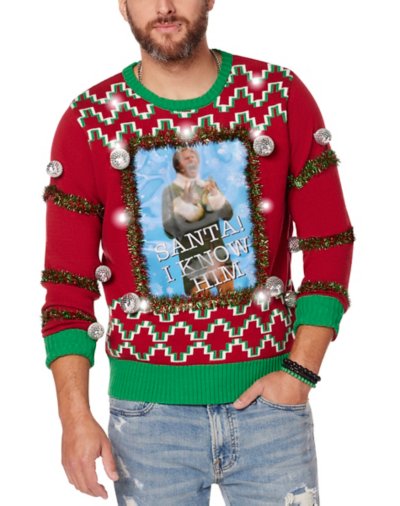 Buy Light-Up Santa I Know Him Ugly Christmas Sweater - Elf by Spirit Halloween for $34.99 at @ Spirithalloween.com