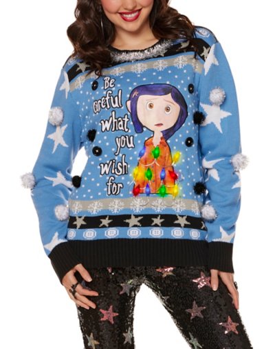 Buy Light-Up Be Careful What You Wish for Christmas Sweater - Coraline by Spirit Halloween for $29.99 at @ Spirithalloween.com
