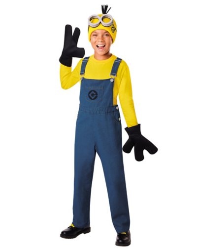 Rep your favorite Minion and prove that you're the ultimate fan when you wear this officially licensed Kevin costume deluxe! This theatrical outfit is designed to look straight out of the movie. The set features the signature Minion overalls, a long sleeved yellow undershirt, a hat, goggles, and gloves, providing everything you need to cause chaos and spread laughter this Halloween! Officially licensed Includes: Overalls Shirt Hat Goggles Gloves Crewneck Long sleeves Pullover style Material: Cotton, polyester, acrylic Care: Spot clean Imported Note: Shoes sold separately.