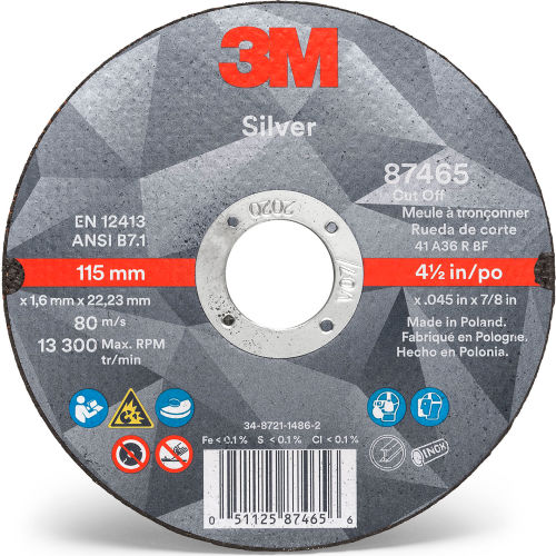 Buy Silver Cut-off Wheel, 4-1/2" x 0.45" x 7/8" T1, Ceramic Grain, 36 Grit - Pkg Qty 50 for $141.00 at @ Globalindustrial.com