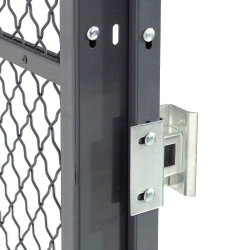 LOW COST SECURITY ROOM - BOLTED WIRE MESH 8' high room with 4 sides - no roof - with window Convenient and Easy to Order We've assembled a complete set of components for you so that you can purchase a complete wire mesh partition security room. The low cost way to protect your merchandise and valuables. Easy to install, move or relocate. Perfect for stock rooms, tool cribs and security areas. Easy to install. Bolted wire mesh partitions have extra-strong C-Channel frame and 10 gauge woven wire - clinched, not welded, into frame - for heavy-duty strength and enhanced appearance. A 5' wide x 8'H sliding gate is included. This gate features ball-bearing suspension and an enclosed sturdy track kit to prevent misalignment. Service window slides open and bolt locks for security. A 12" deep shelf is included with window. Window is mounted in an 8'H panel. The following hardware is included: mortise lock for gate, top capping, channel stiffener posts, corner posts, floor sockets, wall clips, nuts, bolts and detailed assembly instructions. Gray powder coat finish. Every shipment receives special care to ensure no freight damage.