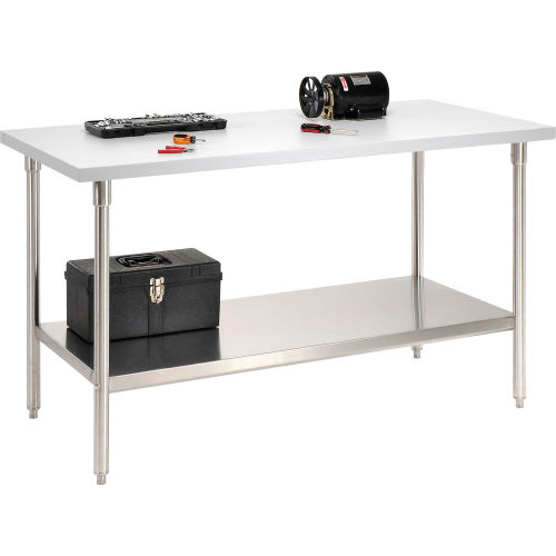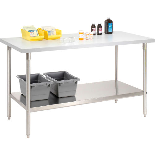 Buy Global Industrial 72 x 30 Plastic Laminate Square Edge Workbench with SS Legs and Lower Shelf for $569.00 at @ Globalindustrial.com
