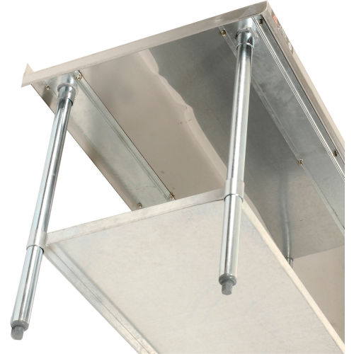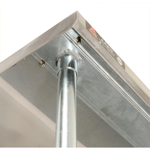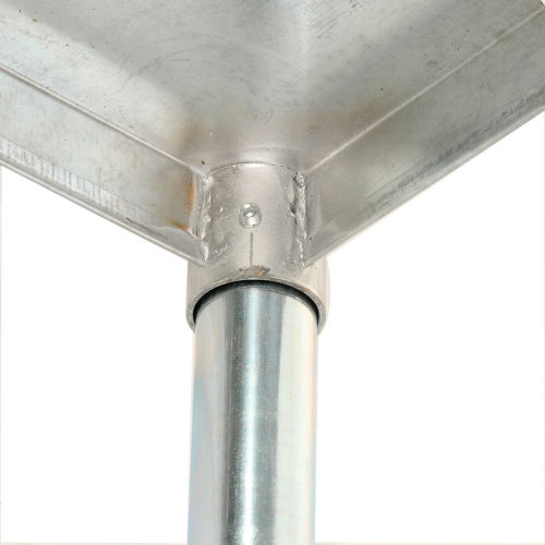 This 430 series workbench features an 18 ga stainless steel top that is perfect for all light duty applications, requiring the convenience and durability of stainless steel. The work surface has 2 heavy gauge channel supports for added stability. The workbench has a 2-1/4"H backsplash and hemmed safety edges. The galvanized lower shelf is fully adjustable. Its tubular legs are 1-5/8" diameter with 1" adjustable leveling feet with optional casters for mobility. Optional drawers measure 15"W x 20"D x 5"H and fits all models.