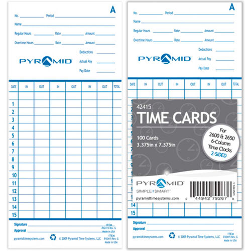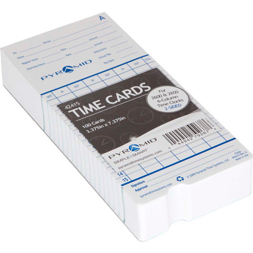 Buy Time Cards For Electronic Time Recorder, Pack of 100 for $19.50 at @ Globalindustrial.com