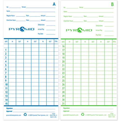 ELECTRONIC TIME RECORDERS Time Cards for Electronic Time Recorder Time cards help record overtime hours and accept highlighting or early/late punches. Made using recycled card stock. Sold in packs of 100.
