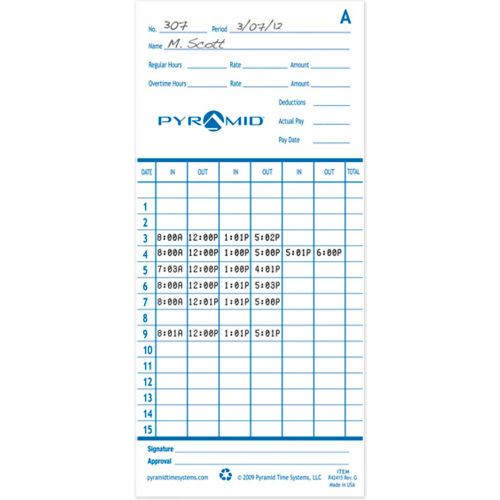 Time Cards For Electronic Time Recorder, Pack of 100