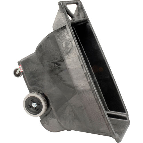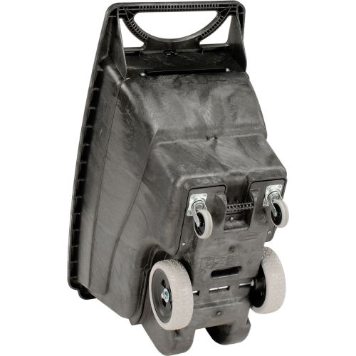 Collect, transport and dump bulk materials effortlessly. Ergonomically designed, with comfortable steer handle and secondary dump handle offering maximum control with minimal effort. Strong structural foam plastic construction has no frame to rust or mar walls. Slim design allows truck to fit through standard doorways. Durable rubber swivel casters and axle-mounted wheels. Nests 3 high for compact storage. Optional Hinged Lid helps control odors and protects cargo. Optional Vinyl Caddy Bag installs easily with snaps to carry cleaning solutions and tools where needed.