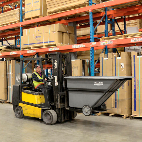 Buy Global Industrial Forkliftable Extra HD Plastic Tilt Truck, 1 Cu. Yd. Cap, 2000 Lbs. Cap, Gray for $2,149.00 at @ Globalindustrial.com