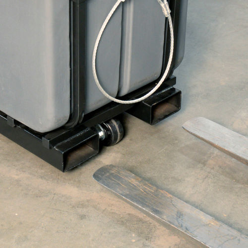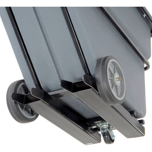 Easily transport heavily loaded tilt trucks where you need them with these 1 cu yd. forkliftable tilt trucks. One piece seamless rotational molded gray polyethylene truck body. Cleans easily, won't dent, corrode or absorb moisture, and is leak-proof. Powder coated Steel chassis provides maximum support. Convenient push handle and lift handle provide secure handling while moving or dumping contents. Features two 12" roller bearing Polyurethane load wheels and one 4" mold on rubber swivel casters for smooth maneuverability. 5-1/2"W x 2-1/2"H x 31"D welded steel fork pockets allow easy transport by forklift, reducing time, fatigue and injuries. The center to center distance of the fork pockets are 14.5'. A 30"L safety cable to secure the tilt truck to the forklift or tugger during transport. Ships assembled. View our coordinating collection of Recycling Trucks.