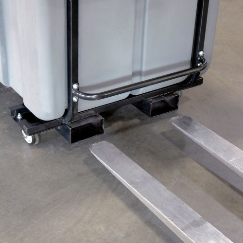 Easily transport heavily loaded tilt trucks where you need them with these 1.5 cu yd. forkliftable tilt trucks. One piece seamless rotational molded gray polyethylene truck body. Cleans easily, won't dent, corrode or absorb moisture, and is leak-proof. Powder coated Steel chassis provides maximum support. Convenient push handle and lift handle provide secure handling while moving or dumping contents. Features two 12" roller bearing Polyurethane load wheels and two 4" mold on rubber swivel casters for smooth maneuverability. 5-1/2"W x 2-1/2"H x 34"D welded steel fork pockets allow easy transport by forklift, reducing time, fatigue and injuries. The center to center distance of the fork pockets are 14.5'. A 30"L safety cable to secure the tilt truck to the forklift or tugger during transport. Ships assembled. View our coordinating collection of Recycling Trucks.
