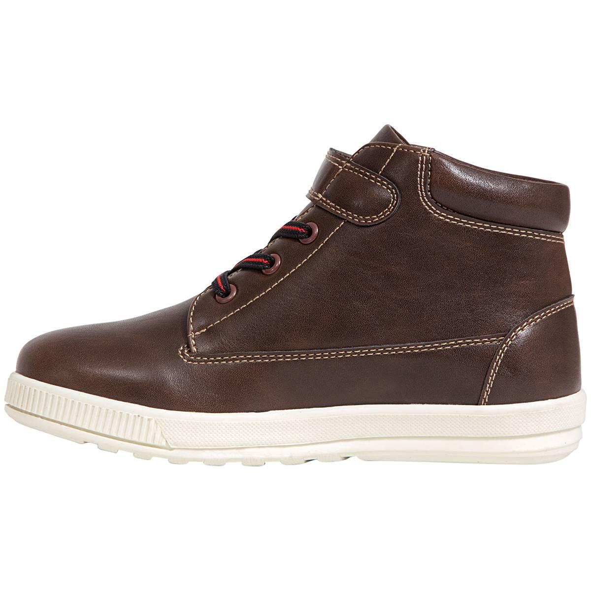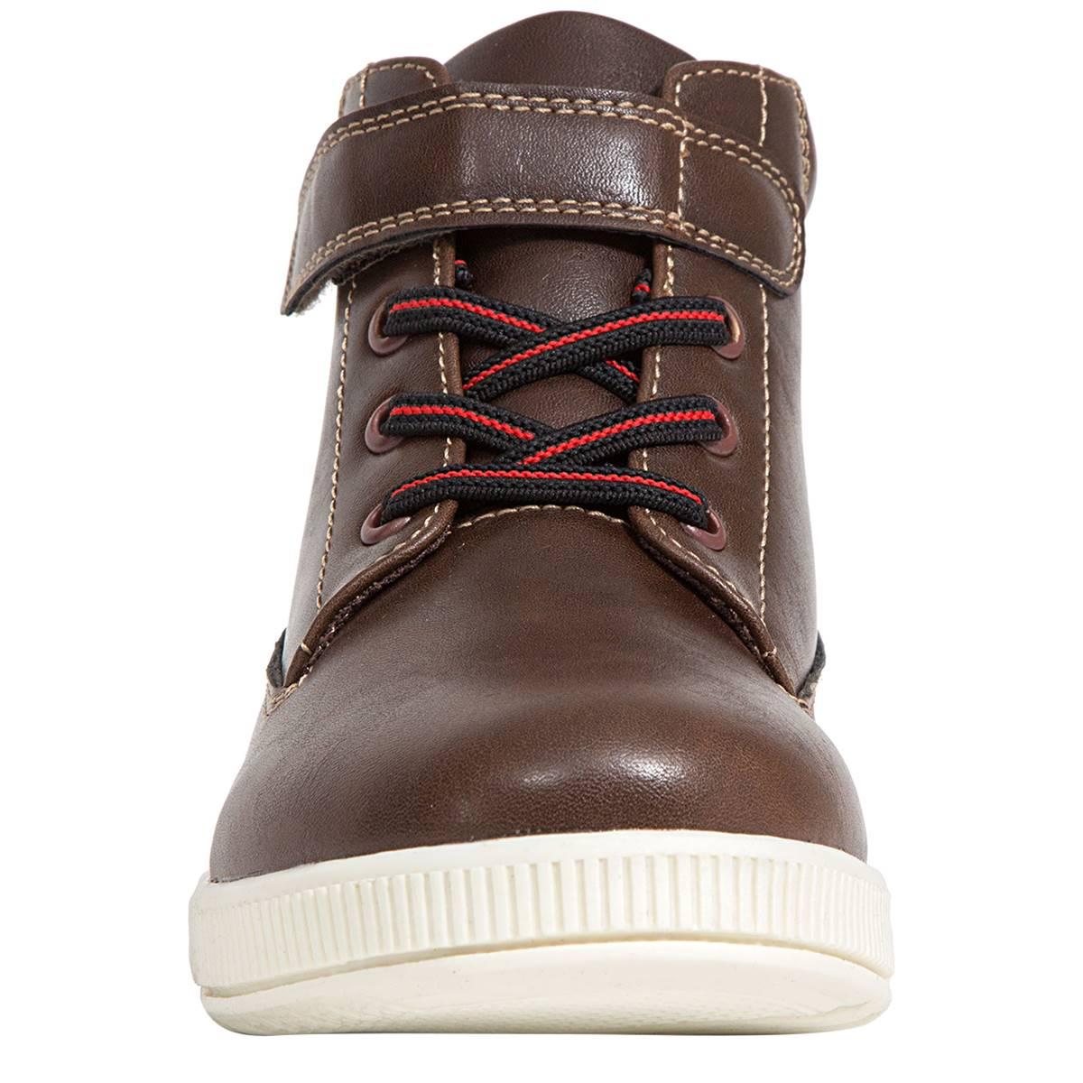 The Big Boy Deer Stags(R) Niles High Top fashion sneakers are a new classic, designed for today's kid. These shoes have a faux leather upper with a TPR outsole. Best of all, the pull-on entry provides easy on and off with hook and loop enclosure and bungee laces. The durable TPR bottom and cushioned memory foam insole gives your child good support and keeps them comfortable all day. Heel Height: 1".