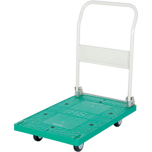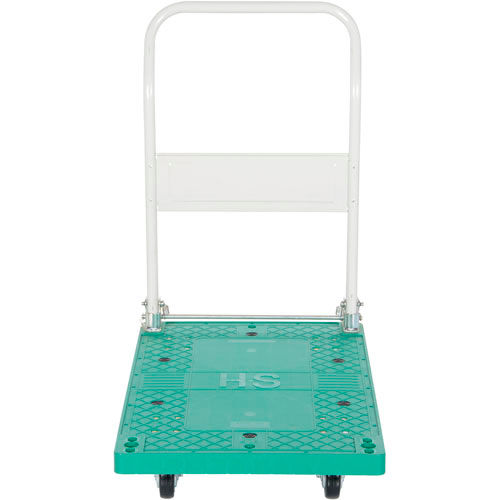 Vestil Folding Plastic Deck Platform Truck 33 x 21 500 Lb. Capacity - FPT-2133 Rugged injection-molded polypropylene platform construction is corrosion resistant and easily cleaned. Underside of platform is ribbed for extra strength to help absorb impact. Offset epoxy coated handle and 2 swivel, 2 rigid mold-on rubber casters help to ease the transport of materials. Features a folding handle for compact storage.