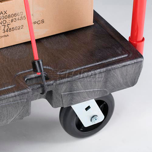 Rubbermaid PLASTIC PLATFORM TRUCK Tough, high impact honeycomb plastic construction is virtually maintenance free. Industrial grade plastic deck will not rust, dent, chip or discolor. Trucks are easily steam-cleaned to look as good as new. Removable powder coat cross-braced push handle and 6" diameter (2 swivel, 2 rigid) TPR (thermoplastic rubber) wheels assure high maneuverability.