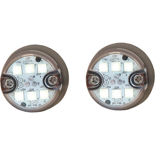 Buyers Products Push-On LED Hidden Strobe Kit with In-Line Flashers has six high intensity LEDs per strobe head and 19 flash patterns with alternating and synchronous feature. It is designed to install inside a vehicle's headlights or tail lights. Each kit contains two light heads and cables with in-line flash modules and 25 ft corrosion-resistant cables with weather pack connectors. These lights can be synchronized with up to eight strobes for simultaneous or alternating flashing. This light comes in a clear color and is backed with a 5 year warranty.