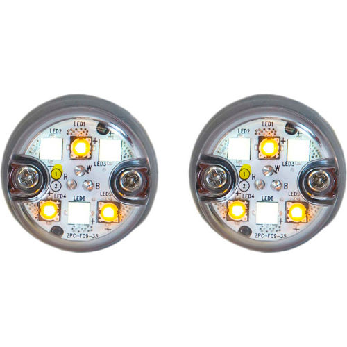 Buyers Products Push-On LED Hidden Strobe Kit with In-Line Flashers has six high intensity LEDs per strobe head and 19 flash patterns with alternating and synchronous feature. It is designed to install inside a vehicle's headlights or tail lights. Each kit contains two light heads and cables with in-line flash modules and 25 ft corrosion-resistant cables with weather pack connectors. These lights can be synchronized with up to eight strobes for simultaneous or alternating flashing. This light comes in an amber/clear color and is backed with a 5 year warranty.