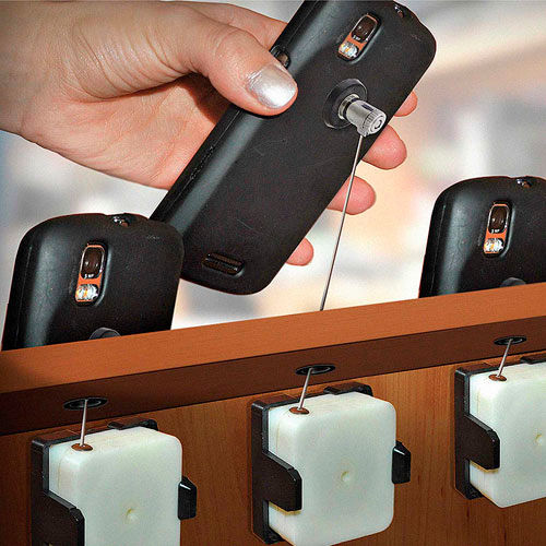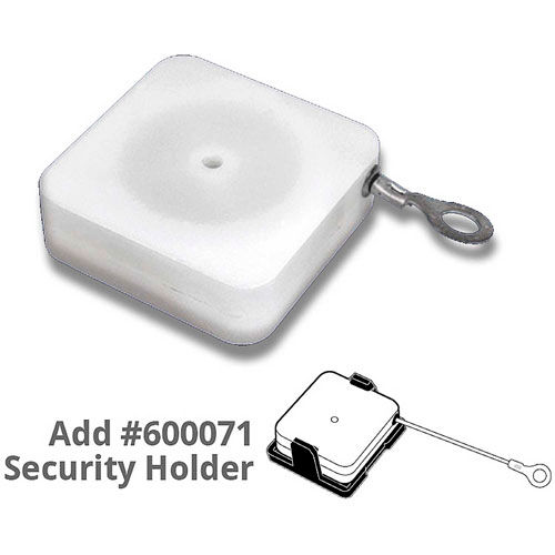 This Security Reel consists of White Plastic Housing. It measures x x 0.58"high. Metal cable measures 44" long.