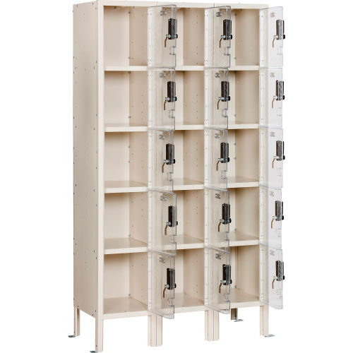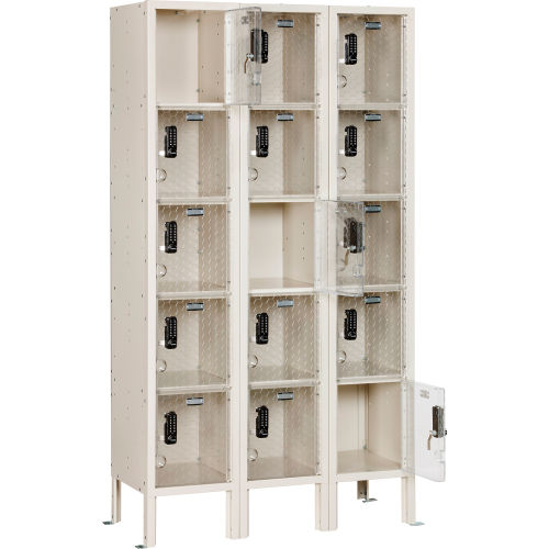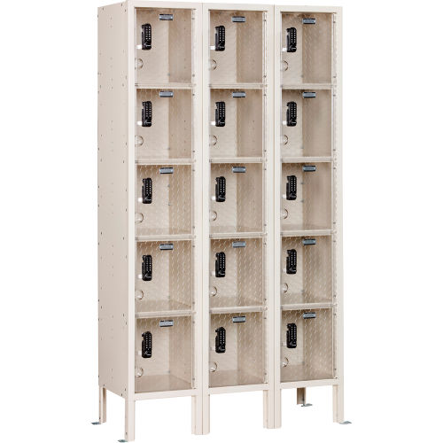 Buy Global Industrial 5-Tier 15 Door Clear View Locker, Digital Lock, 36"Wx15"Dx66"H, Tan, Assembled for $1,075.00 at @ Globalindustrial.com