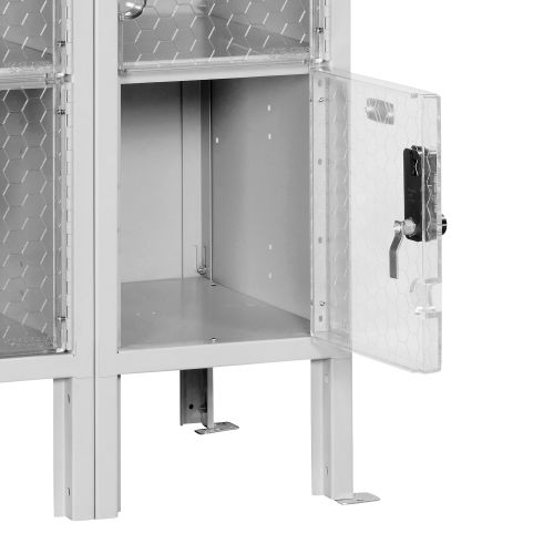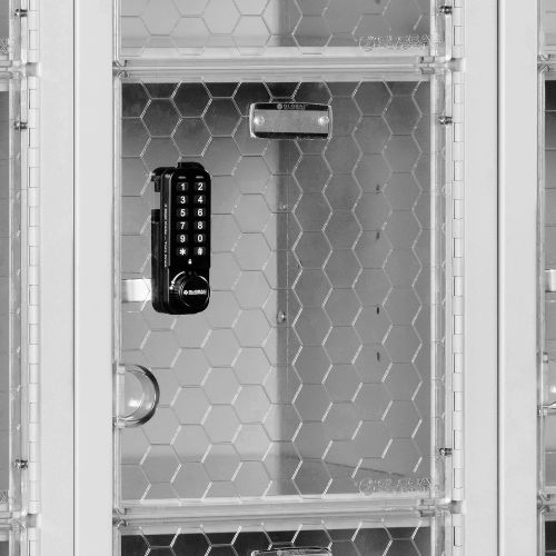✓ Scratch-resistant, transparent polycarbonate doors ✓ Digital lock with keypad to keep belongings secure ✓ Finger-pull friction hasp Give your employees, students, and guests a secure place to store their belongings with this set of Global Industrial Clear View Lockers. Featuring scratch-resistant, transparent polycarbonate doors to permit the viewing of contents, this 5-tier, 15-door set of lockers is engineered specifically for use in schools, commercial buildings, factory facilities, and more. Its steel surface, with an attractive & durable powder coat finish, ensures a long service life while the digital lock keeps contents safe. Easily programmable, the digital lock can be used in either Public mode for single-use passcodes or Private mode for longer-term individual use. Assembly required. Limited 1-Year Warranty. Includes one battery & one master key per lock, and one blank number plate per door Overall Dimensions: 36"W x 18"D x 66"H Lockers must be anchored securely to floors. Mounting anchors/hardware sold separately.