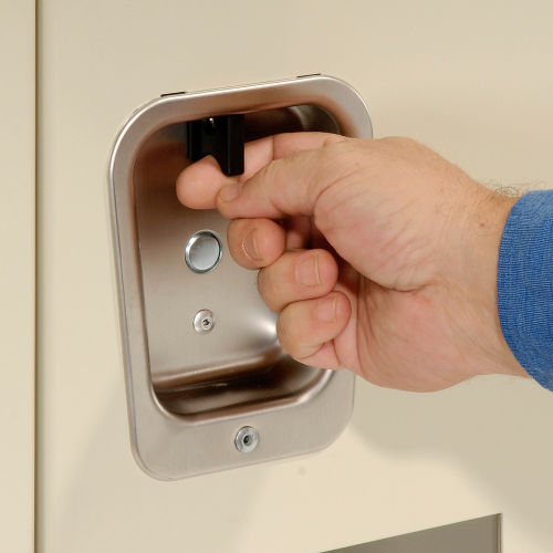 Backed by a 2 Year Limited Warranty. These Premium Security Lockers' doors permit viewing of contents through transparent, scratch resistant and highly rugged polycarbonate windows engineered specifically for use in school, commercial and factory facilities. Legs add 6" to height. These Triple Tier Locker doors feature steel with polycarbonate windows and are equipped with stainless steel recessed handles and padlockable gravity latches. All steel surfaces are finished in rugged Tan enamel. Recessed handles provide a catch-free surface, discourage tampering with padlocks and protect locker face from padlock wear. These triple tier lockers are ideal for added storage of personal items where space is limited. Antimicrobial Recessed Handle Finger Lift Cover, includes an Antimicrobial agent offering protection against, molds, bacteria and some viruses without compromising functionality, strength or durability. Made In USA.