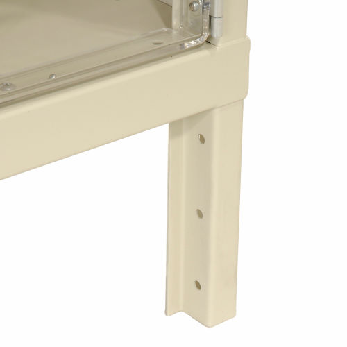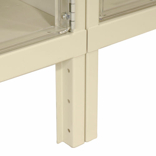 Backed by a 2 Year Limited Warranty. These Premium Security Lockers' doors permit viewing of contents through transparent, scratch resistant and highly rugged polycarbonate windows engineered specifically for use in school, commercial and factory facilities. Legs add 6" to height. These Six Tier Lockers have all polycarbonate doors with a padlockable friction latch. All steel surfaces are finished in rugged Tan enamel. Six tier lockers are ideal for added storage of personal items where space is limited. Antimicrobial Box Door Finger Pull is made of a tough black nylon material, which includes an Antimicrobial agent offering protection against, molds, bacteria and some viruses without compromising functionality, strength or durability. Made In USA.