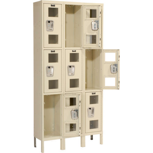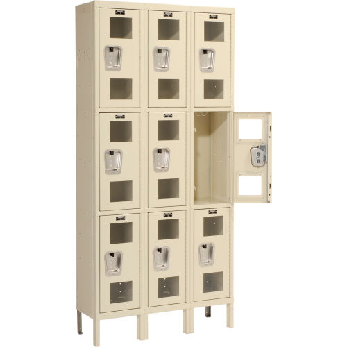 Buy Hallowell 3-Tier 9 Door Safety-View Locker, 36"W x 18"D x 78"H, Tan, Unassembled for $839.00 at @ Globalindustrial.com
