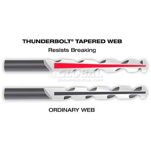 Milwaukee 48-89-2309 Thunderbolt Cobalt Drill Bit 3/16 " Milwaukee Thunderbolt Cobalt drill bits are designed for extreme durability and long life in specialty applications. The Thunderbolt web features a thicker core than a standard drill bit, which provides ultimate strength and protects against side-load breakage. A specially designed parabolic flute form clears chips and debris fast to keep the bit cool. A precision start, 135 Split Point tip starts on contact to keep the bit from walking for fast accurate holes. Excellent for drilling on curved surfaces, requires less effort to drill and is highly recommended for use with portable drills. Features: Thunderbolt Web, Provides Longer Life and Faster Driller TimesParabolic Flute, Clears Chips Faster135 degree Split Point, Precision Start No WalkingSpecialty Bit for Cast Iron and Stainless Steel - Pkg Qty 5.