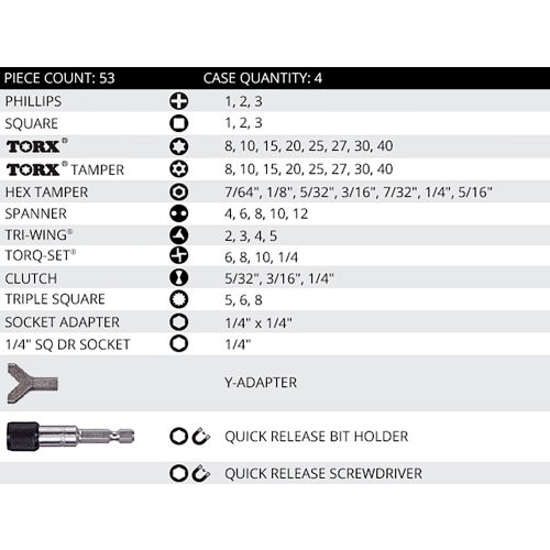 Made from S2 modified shock resistant steel for professional performance and durability. Proprietary precision CNC machined tips for excellent fit in fastener recess. Heavy Duty metal storage case.