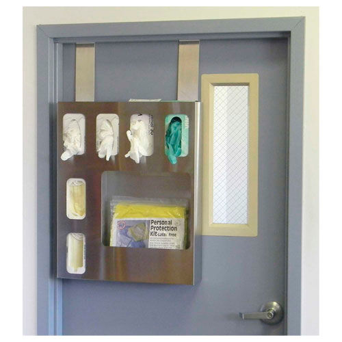 Hanger brackets are sold in pairs for proper mounting. The hangers are made out of sturdy 18 gauge stainless steel and can be mounted on any door that is thick. Brackets extend down from the top of the door by and can be used to hang virtually anything with two mounting holes. We provide (4) 1" squares of 3M Dual lock with each pack. The 3M Dual lock is a removable adhesive that can be used to further secure the mounted product to the door. This eliminates the product from banging into the door. Hanger brackets only. Isolation cabinet and contents not included.