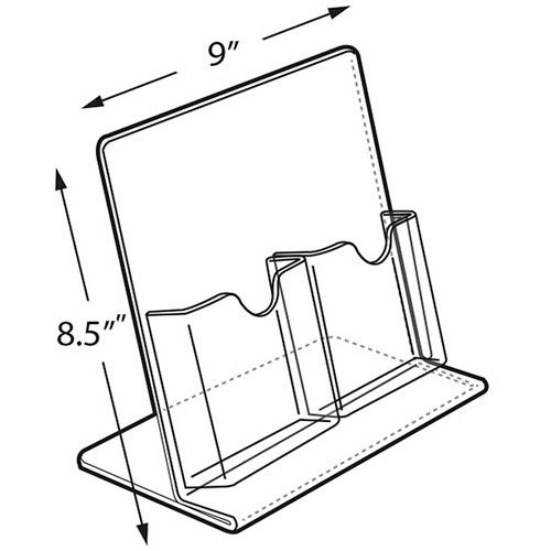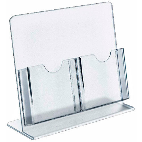 The L-Shape slanted clear acrylic back with attached clear brochure holder is a great literature display for restaurant menus, hotel concierge desks, hotel registration desks, or any marketing material.