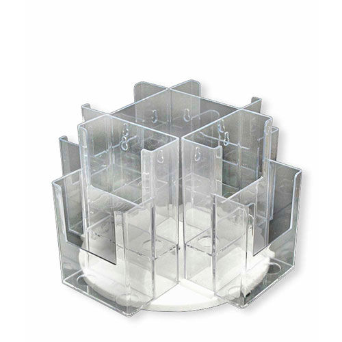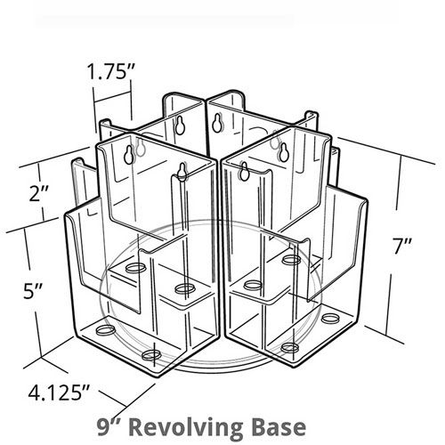 This 8 Pocket Tri-Fold Brochure Counter Display revolves on a 9" base. Organize scattered paperwork and files, or display maps, brochures, restaurant menus, or forms. Great for hotel concierge or registration desks, or any company marketing material. Made of clear to allow for easy viewing. Opening Dimensions. 4.125" X 1.25" X 4".