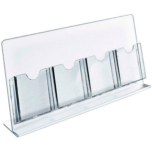 The L-Shape slanted clear acrylic back with attached clear brochure holder is a great literature display for restaurant menus, hotel concierge desks, hotel registration desks, or any marketing material.