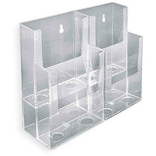 This 4 Pocket Tri-Fold Brochure Counter Display exhibits important information and helps consolidate scattered paperwork, files, maps, brochures or magazines. Literature holders are great tabletop displays for restaurant menus, bank signs, Hotel concierge desks, Hotel registration desks, or any company marketing material. Made of clear to allow for easy viewing. Opening Dimensions. 4.125" X 1.25" X 4".