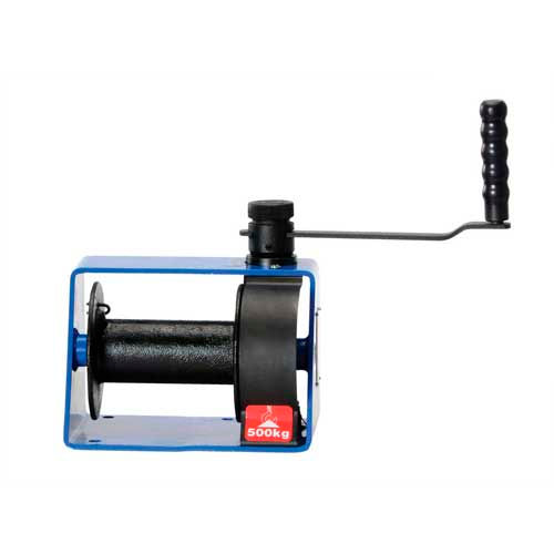HAND OPERATED WINCH This Winch is ideal for many Lifting, Lowering and Pulling Applications. Worm Gear Winch allows for superior load control, and features a reinforced frame and comfortable grip handle. The worm gear provides load holding capability, as the reel stops automatically when the handle is released, locking the load in place. Crank handle can be adjusted in length to provide best torque for each lifting application. Winch housing and drum are made from robust steel plate with a durable enamel finish. Note: Wire rope is not included.