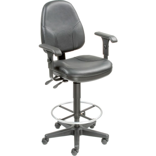 Buy Interion Leather Operator Stool with Arms - 360 Footrest - Black for $259.95 at @ Globalindustrial.com